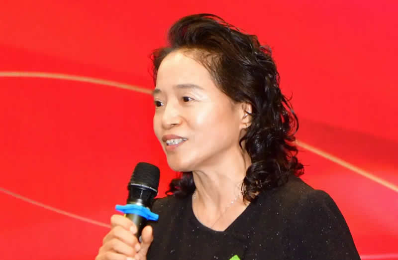 ▲海南锅圈国际食品有限公司总经理张秀萍介绍产业布局情况。