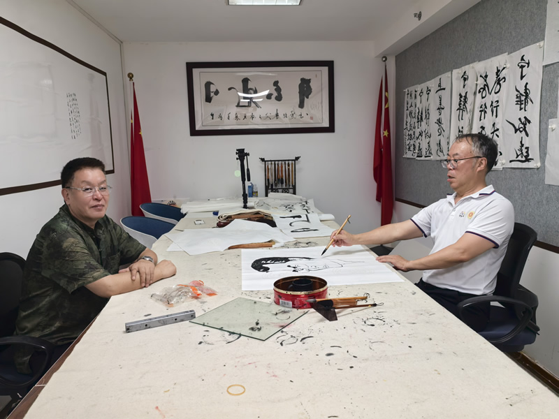 此外,中国社会艺术协会办公室主任周中华现场用毛笔为李浩然作素描头像画,寥寥几笔便勾画出李浩然的画像令人拍手称赞。