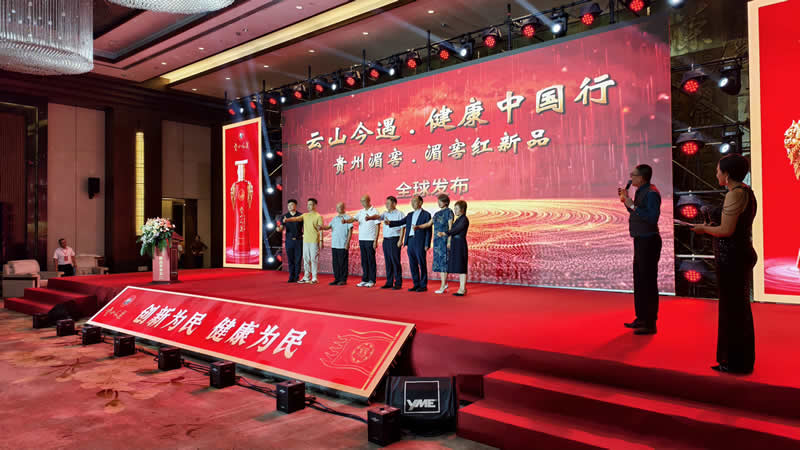 会上,湄潭旅游协会会长陶晓旭登台发表热情洋溢的演讲,他紧握话筒的手因激动微微上扬:“湄窖红的诞生,是湄潭‘酒旅融合’的新起点!”他提到,湄潭既有“中国茶海”的生态画卷,又有百年酒窖的文化底蕴,如今杨艳与陈长文的跨界合作,正让“健康酒”成为连接文旅与康养的新纽带。“未来,我们将以湄窖红为媒,推出‘品酒、养生、游茶海’的特色线路,让每一位来客在山水间读懂健康,在酒香中爱上湄潭!”话音未落,全场响起雷鸣般的掌声,久久不息。作为盛会的“主角”,湄窖红健康酒承载着这份期待——它响应贵州“三香并进”战略,在百年湄窖的醇厚基底中融入保肝护肾良方,让传统佳酿焕发健康新韵。杯中酒液如红宝石般流转,映照着众人的笑颜,也映照着湄潭文旅康养产业的光明前景。
