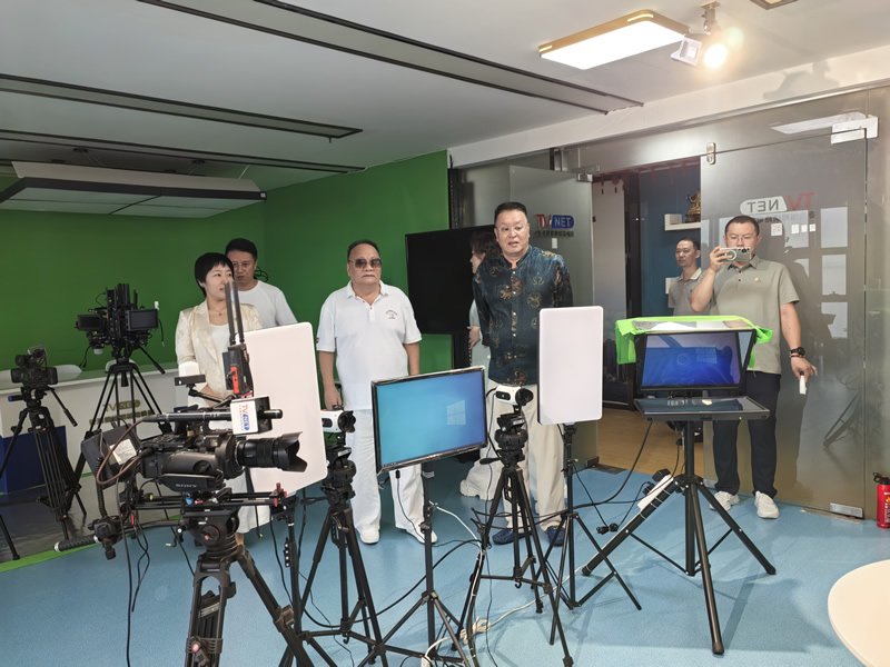 会后,于丽会长一行参观了香港国际网络电视台海南总部4K演播中心,亲身体验了虚拟现实新闻制作系统。